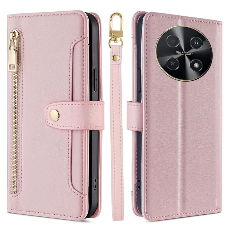 Για Huawei nova 12i 4G Sheep Texture Cross-body φερμουάρ πορτοφόλι δερμάτινη θήκη τηλεφώνου (ρόζ)