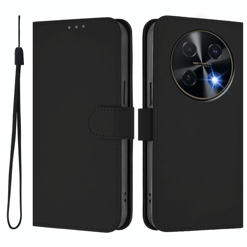 Για Huawei nova 12i 4G δέρμα αίσθηση Solid Color δέρμα τηλέφωνο υπόθεση με κορδόνι (μαύρο)