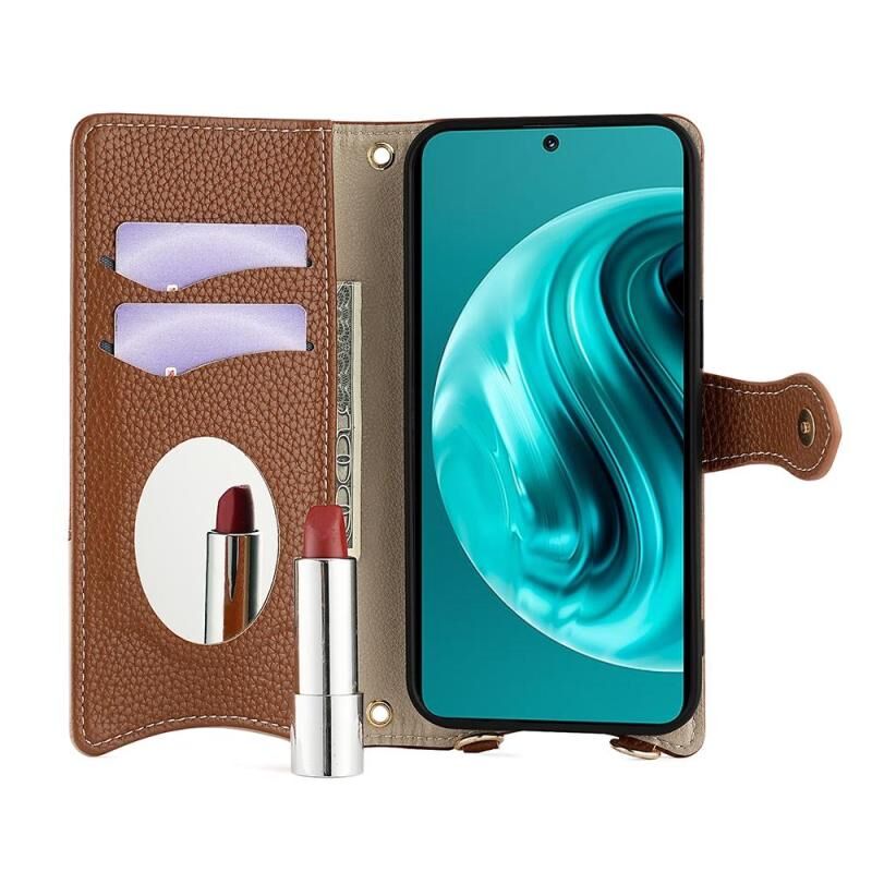 7. Ενσωματωμένος οβάλ καθρέφτης μακιγιάζ από ανοξείδωτο χάλυβα: Ένας ανθεκτικός, ανθεκτικός στις γρατσουνιές οβάλ καθρέφτης στο εσωτερικό της θήκης του τηλεφώνου για εύκολο φρεσκάρισμα του μακιγιάζ εν κινήσει.