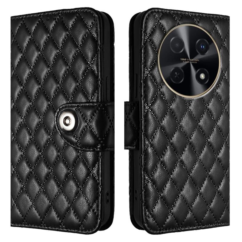Για Huawei nova 12i Rhombic υφή Flip δέρμα τηλέφωνο υπόθεση με κορδόνι (μαύρο)