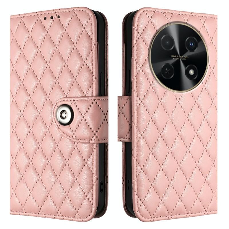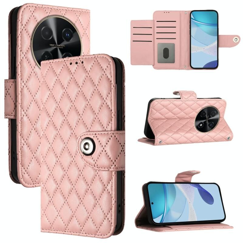 Για Huawei nova 12i Rhombic υφή Flip υπόθεση τηλεφώνου δέρμα με κορδόνι (Coral Pink)