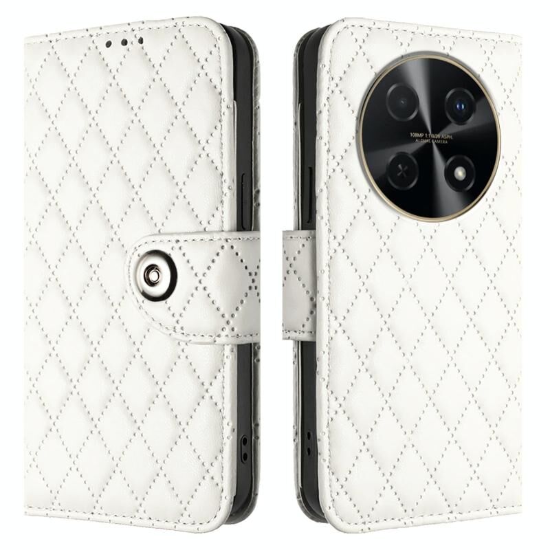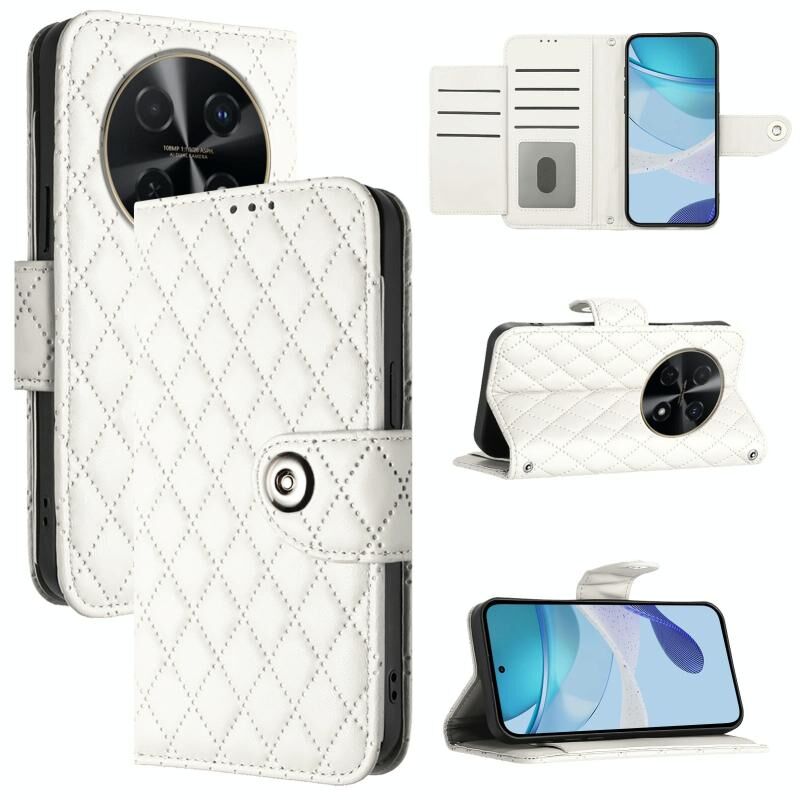 Για Huawei nova 12i Rhombic υφή Flip δέρμα τηλέφωνο υπόθεση με κορδόνι (λευκό)