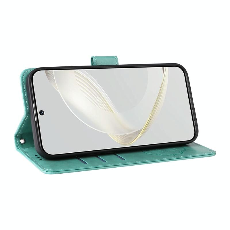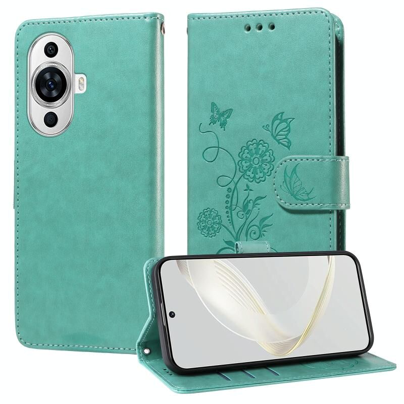 Θήκη τηλεφώνου δερμάτινη με ανάγλυφα λουλούδια και πεταλούδες για Huawei nova 12s 4G (Μωβ)