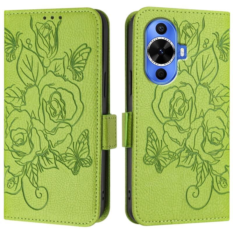 Για Huawei nova 12s 4G Ανάγλυφο Rose RFID Anti-theft Δερμάτινη θήκη τηλεφώνου (Πράσινο)