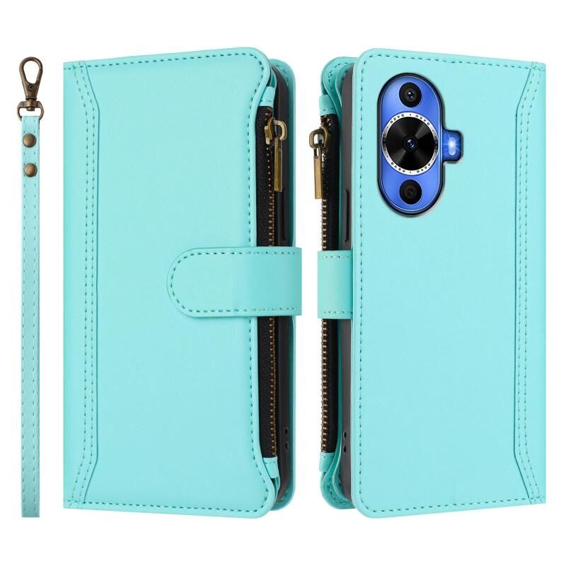 Για Huawei nova 12s 4G Global Μαγνητικό Κλείσιμο 9 Θήκες Κάρτας Δερμάτινη Θήκη με Φερμουάρ και Λουρί Χεριού (Σκούρο Μπλε)