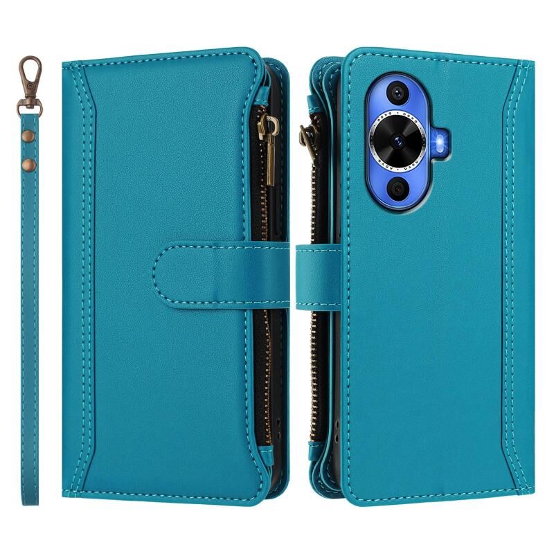 Για Huawei nova 12s 4G Global Μαγνητικό Κλείσιμο 9 Θήκες Κάρτας Δερμάτινη Θήκη με Φερμουάρ και Λουρί Χεριού (Τουρκουάζ)