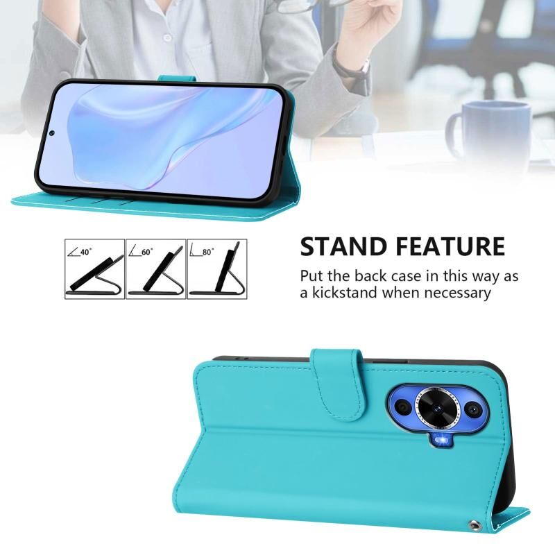 Για Huawei nova 12s 4G δέρμα αίσθηση στερεό χρώμα δερμάτινη θήκη τηλεφώνου με κορδόνι (Lake Blue)