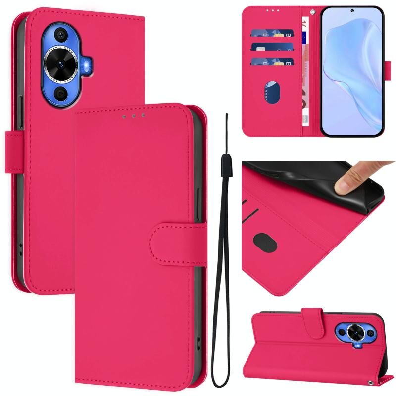 Για Huawei nova 12s 4G Skin Feel Solid Color Leather Phone Case με κορδόνι (Rose Red)