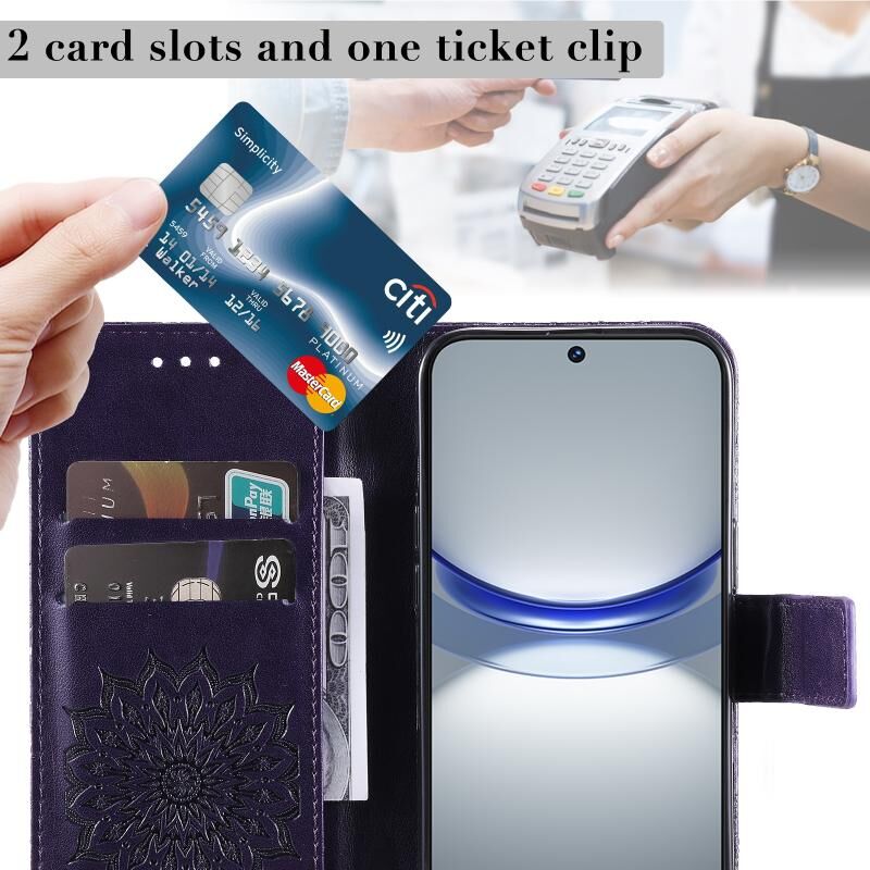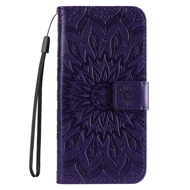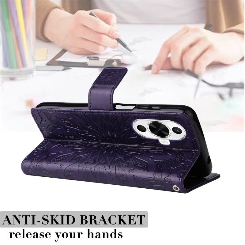 Θήκη τηλεφώνου Huawei nova 12s από δέρμα με ανάγλυφο σχέδιο ηλίανθου (Μωβ)