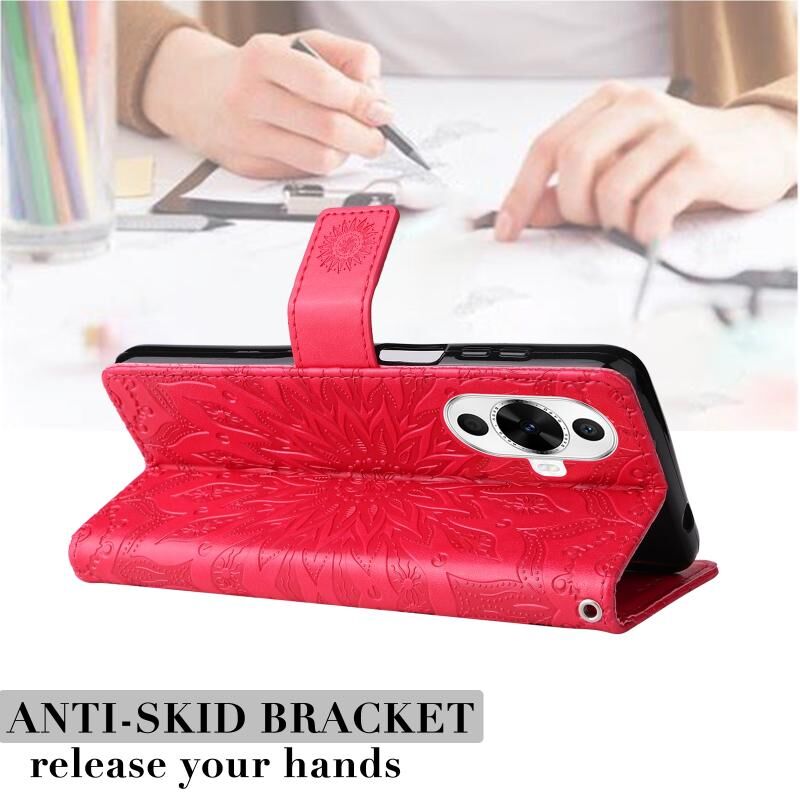 Θήκη τηλεφώνου Huawei nova 12s από δέρμα με ανάγλυφο σχέδιο ηλίανθου (Κόκκινο)