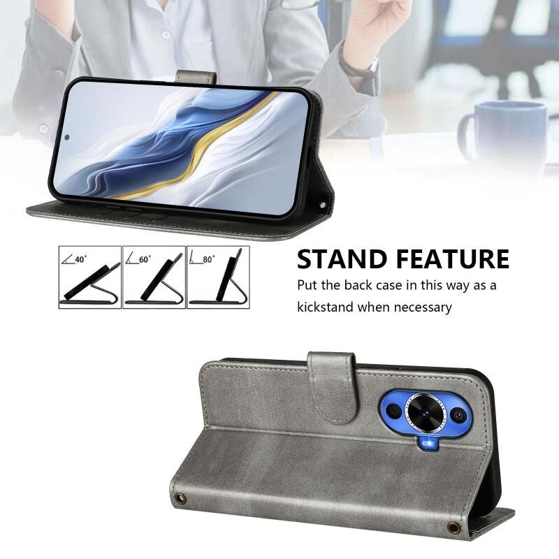 Θήκη τηλεφώνου Huawei Nova 12s Global Line Splicing Buckle Retro Leather (Γκρι)