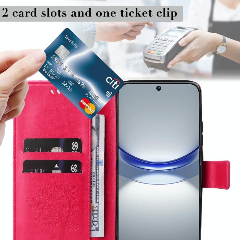 Για Huawei nova 12s δέντρο & Cat ανάγλυφο μοτίβο Flip δέρμα τηλέφωνο υπόθεση (Rose Red)