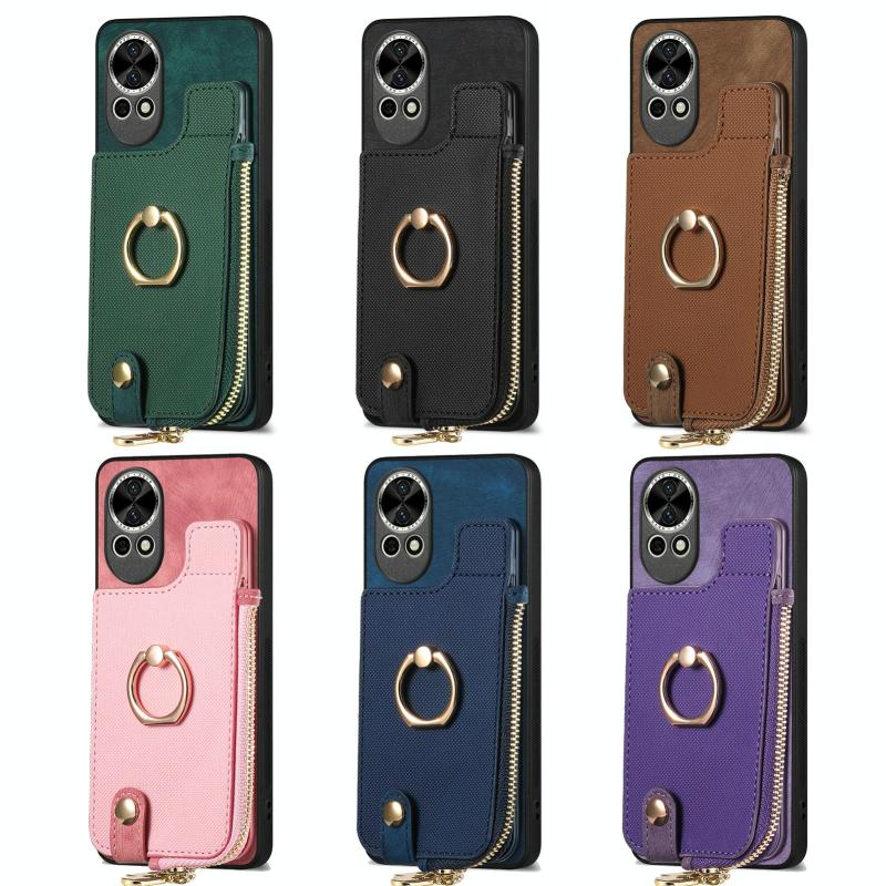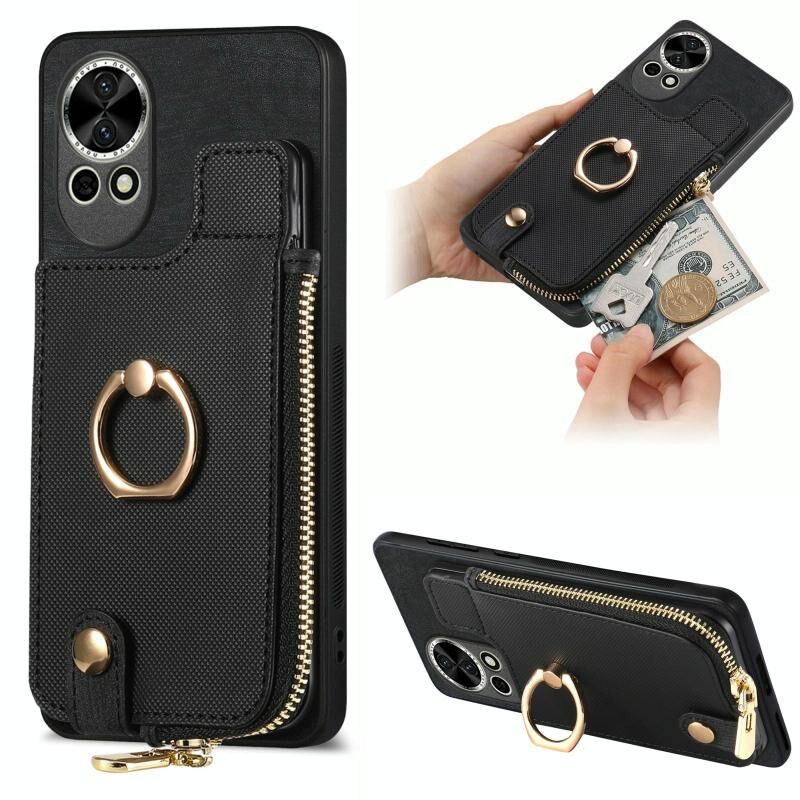 Για Huawei nova 13 Δερμάτινη Θήκη Πορτοφολιού με Δαχτυλίδι & Φερμουάρ (Μαύρο)
