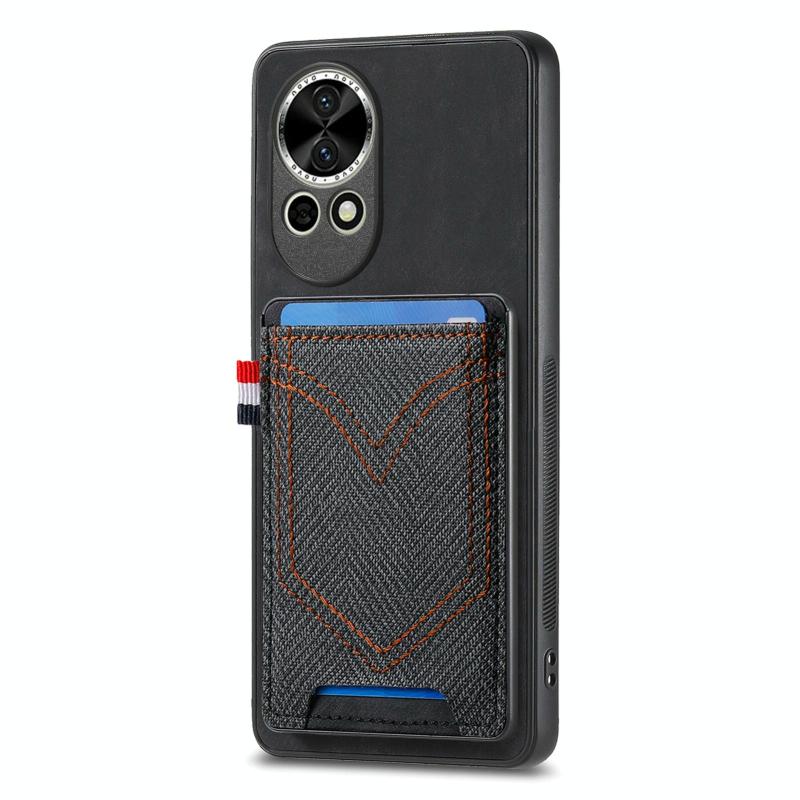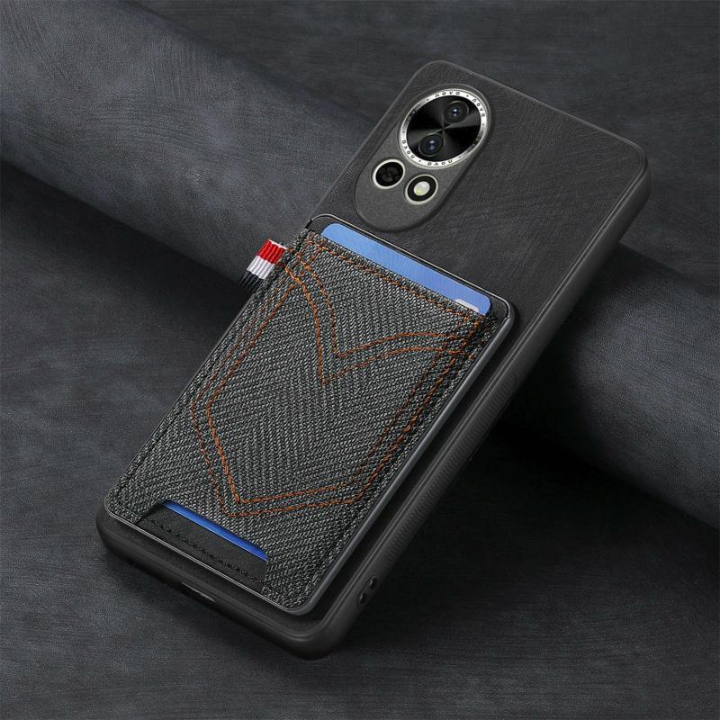 Θήκη τηλεφώνου Huawei nova 13 με υφή τζιν και δερμάτινη όψη, με θήκη για κάρτες (Μωβ)