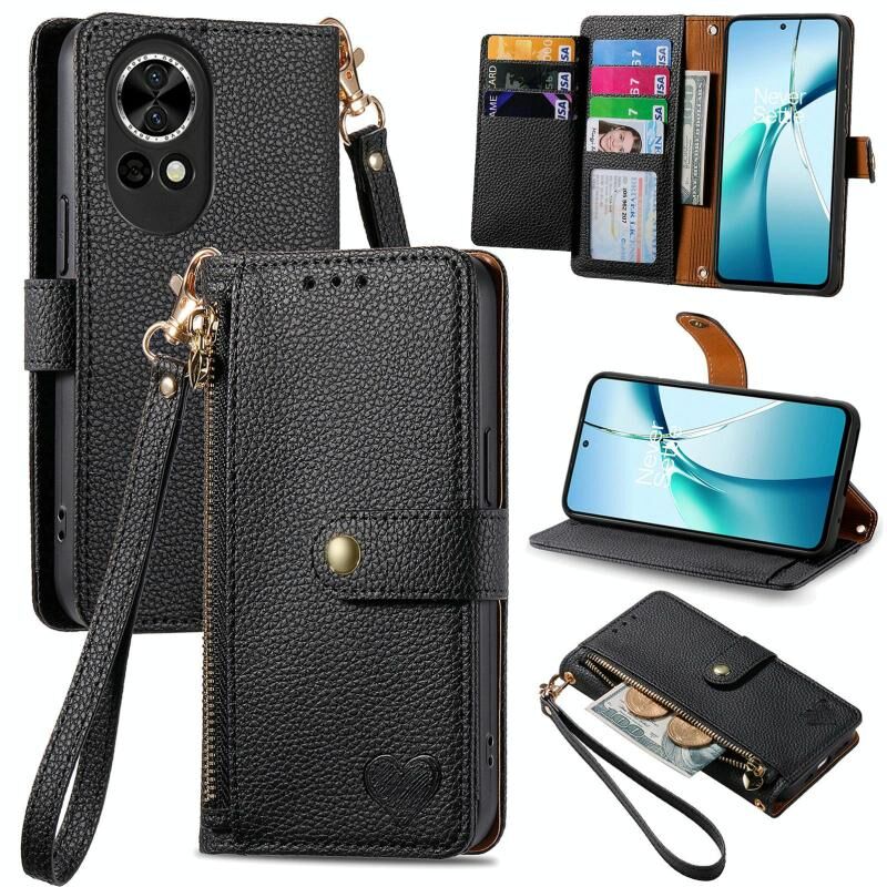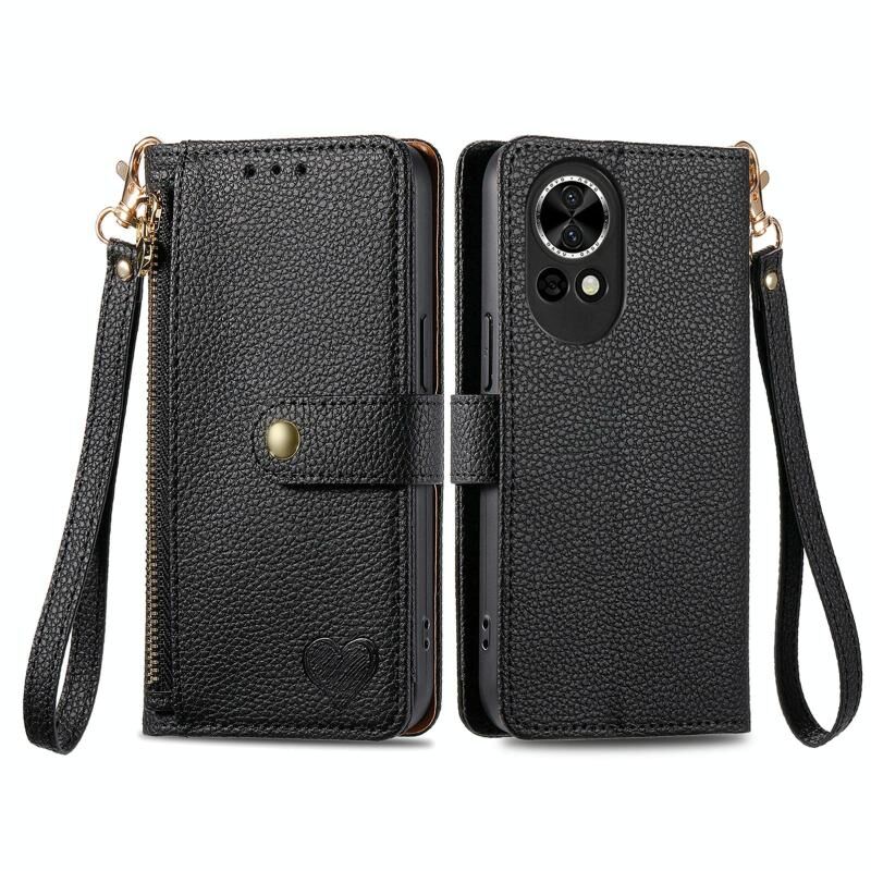 Θήκη τηλεφώνου Huawei nova 13 Love Zipper Lanyard από δέρμα (Μαύρο)