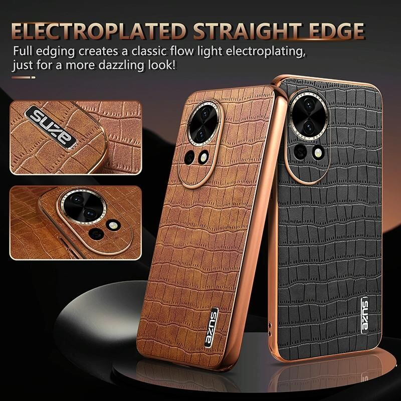 Θήκη κινητού τηλεφώνου πλήρους κάλυψης με ηλεκτρολυτικό πλαίσιο και υφή κροκόδειλου για Huawei nova 13 / nova 12 (Μαύρο) (AZNS)