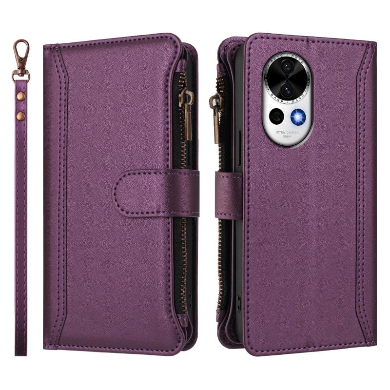For Huawei nova 13 / nova 12 Magnetic Closure 9 Card Slots Zipper Leather Case with Hand Strap(Purple)