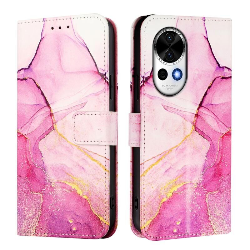 Θήκη τηλεφώνου Huawei nova 13 / nova 12 PT003 με δερμάτινη αναδιπλούμενη επιφάνεια σε σχέδιο μαρμάρου (Ροζ Μωβ Χρυσό)