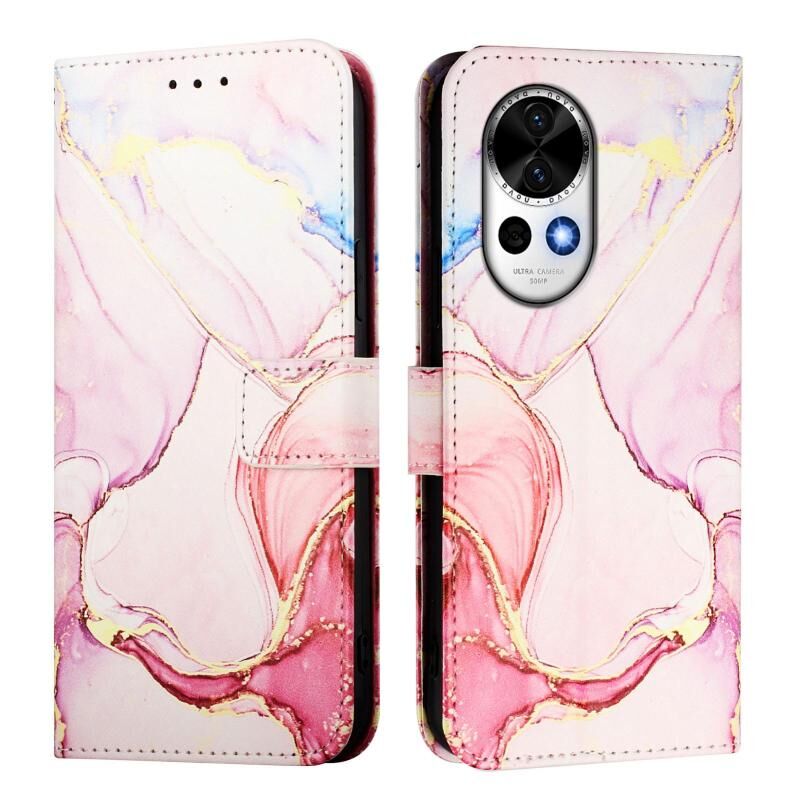 Θήκη τηλεφώνου Huawei nova 13 / nova 12 PT003 με δερμάτινη αναδιπλούμενη επιφάνεια σε σχέδιο μαρμάρου (Ροζ χρυσός)