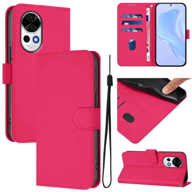 Για Huawei Nova 13 / Nova 12 Skin Feel Solid Color Leather Phone Case με κορδόνι (Rose Red)