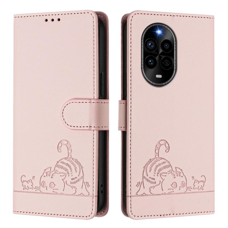 For Huawei nova 13 Pro 5G Cat Rat Embossed Pattern RFID Leather Phone Case with Lanyard(Pink)