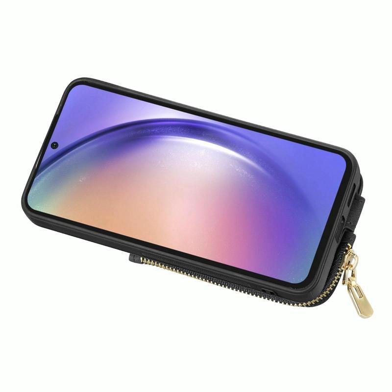 2. Λειτουργία Πορτοφολιού με Φερμουάρ: Η δερμάτινη θήκη είναι εξοπλισμένη με υποδοχές για κάρτες και ένα μικρό ποσό μετρητών.