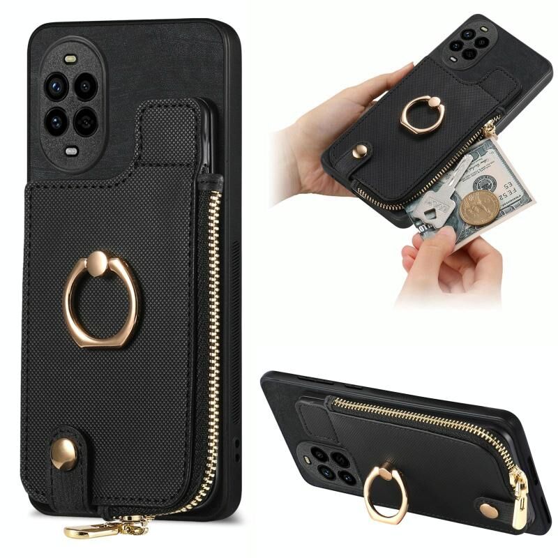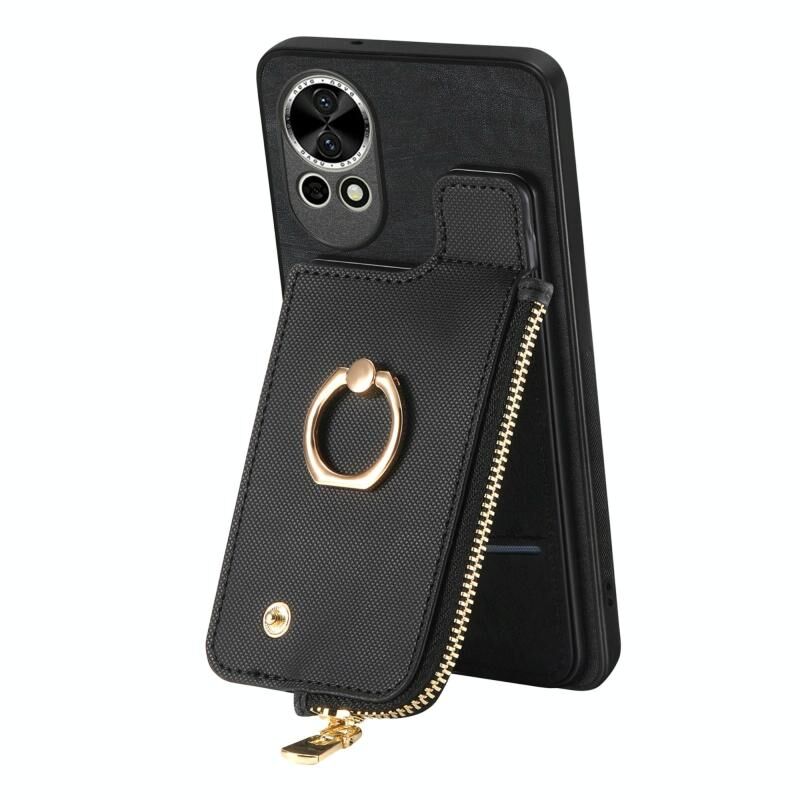 Για Huawei nova 13 Pro Δερμάτινη Θήκη Πορτοφόλι με Δαχτυλίδι & Φερμουάρ (Μαύρο)