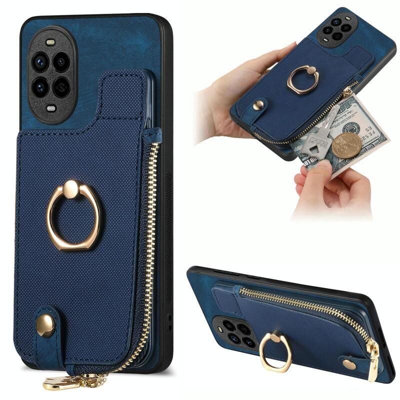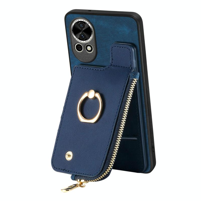 Για Huawei nova 13 Pro Δερμάτινη Θήκη Πορτοφόλι με Δαχτυλίδι & Φερμουάρ (Μπλε)