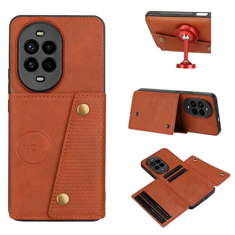 For Huawei nova 13 Pro Double Buckle Card Slots Magnetic Phone Case(Brown)