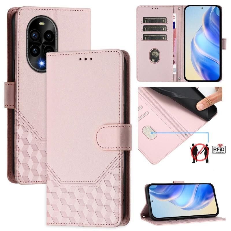 Για Huawei nova 13 Pro Honeycomb ανάγλυφο RFID δερμάτινη θήκη τηλεφώνου (ροζ)