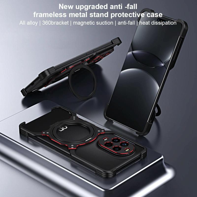 For Huawei nova 13 Pro Mechanical Arm Borderless MagSafe Holder Metal Phone Case(Black Red)