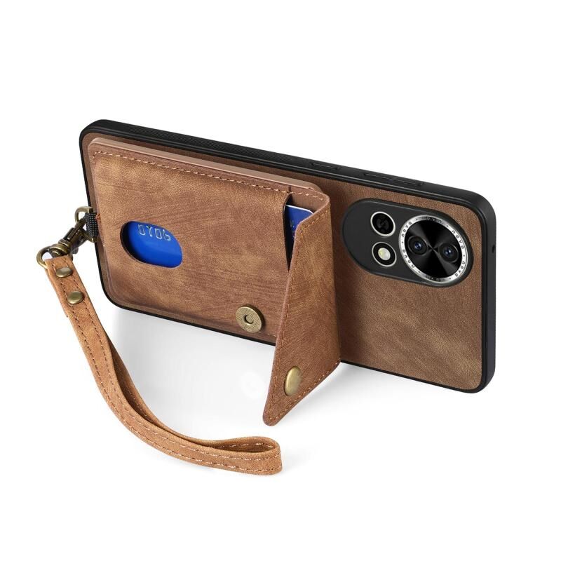 Θήκη τηλεφώνου Huawei nova 13 Pro Retro Card Wallet, δερμάτινη, αναδιπλούμενη με λουρί (Καφέ)