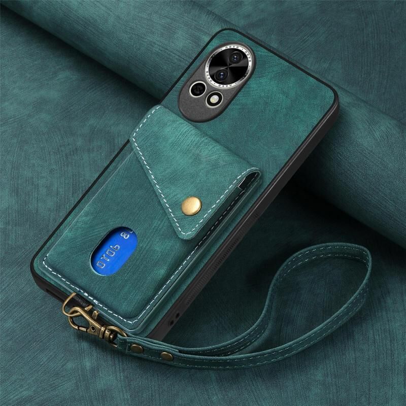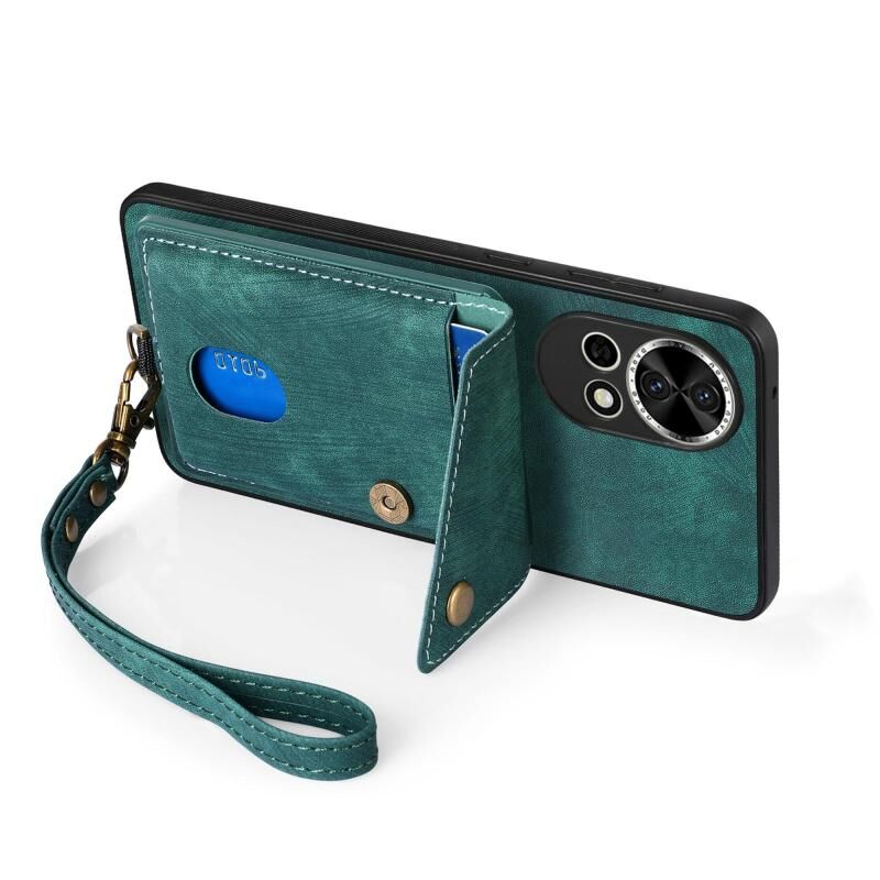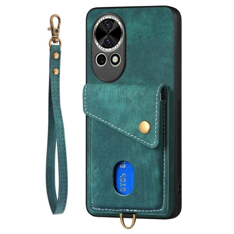 Θήκη τηλεφώνου Huawei nova 13 Pro Retro Card Wallet, δερμάτινη, αναδιπλούμενη με λουρί (πράσινο)