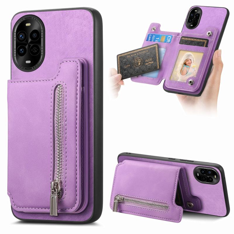 Θήκη Huawei nova 13 Pro Retro MagSafe με Δερμάτινο Πορτοφόλι & Κάρτες (Μωβ)
