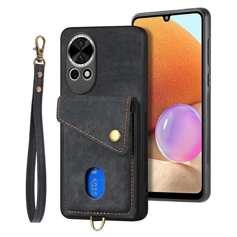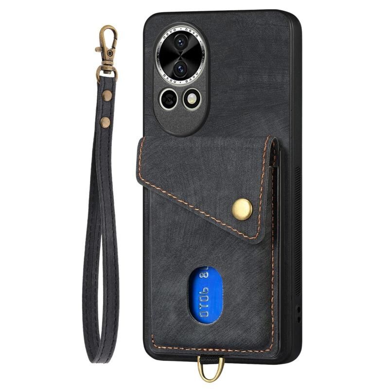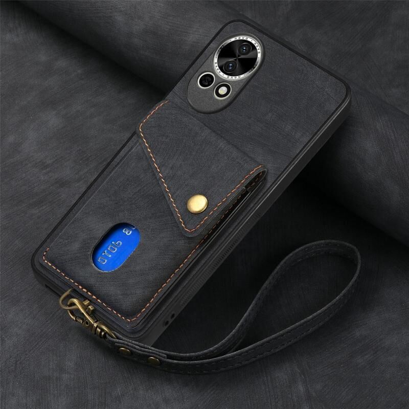 Θήκη τηλεφώνου Huawei nova 13 Retro Card Wallet από Δέρμα με Λουρί (Μαύρο)