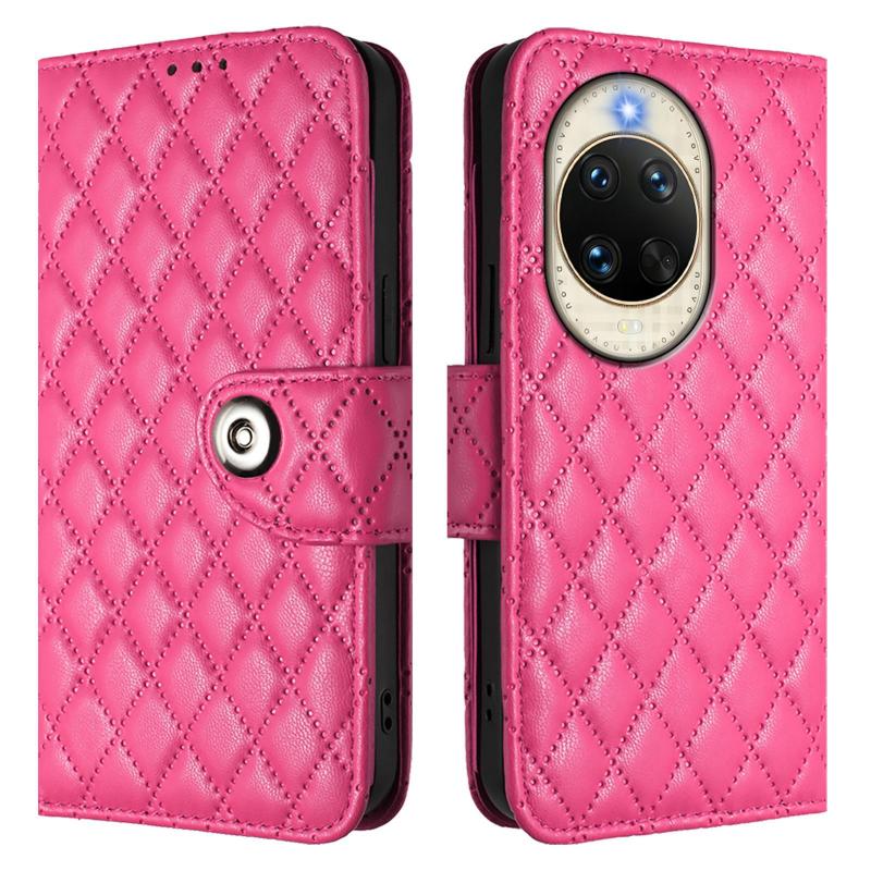 For Huawei nova 14 5G Rhombic Texture Flip Leather Phone Case with Lanyard(Rose Red)