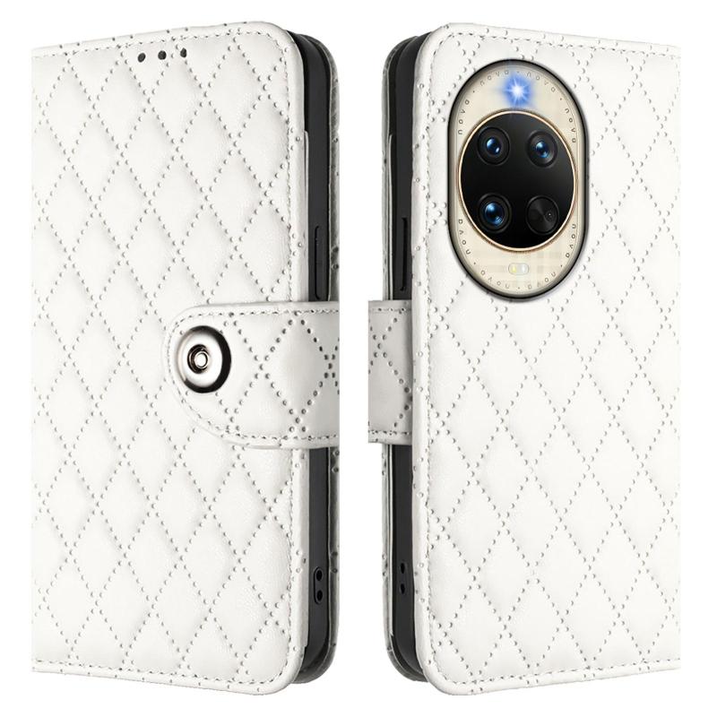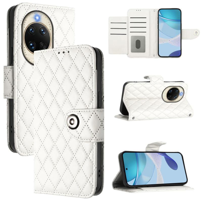 For Huawei nova 14 5G Rhombic Texture Flip Leather Phone Case with Lanyard(White)