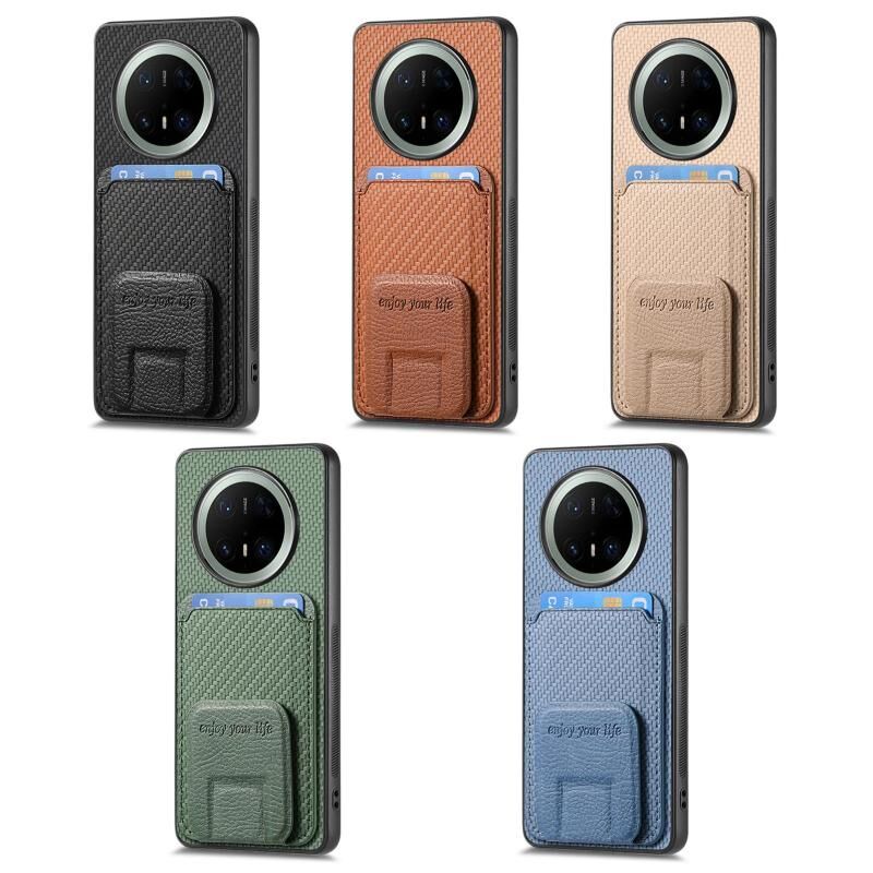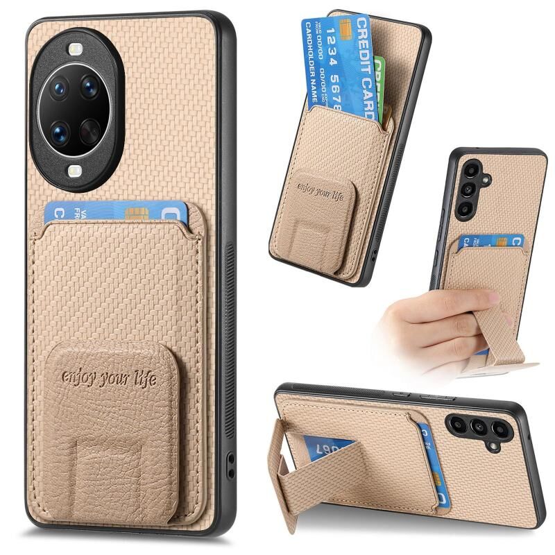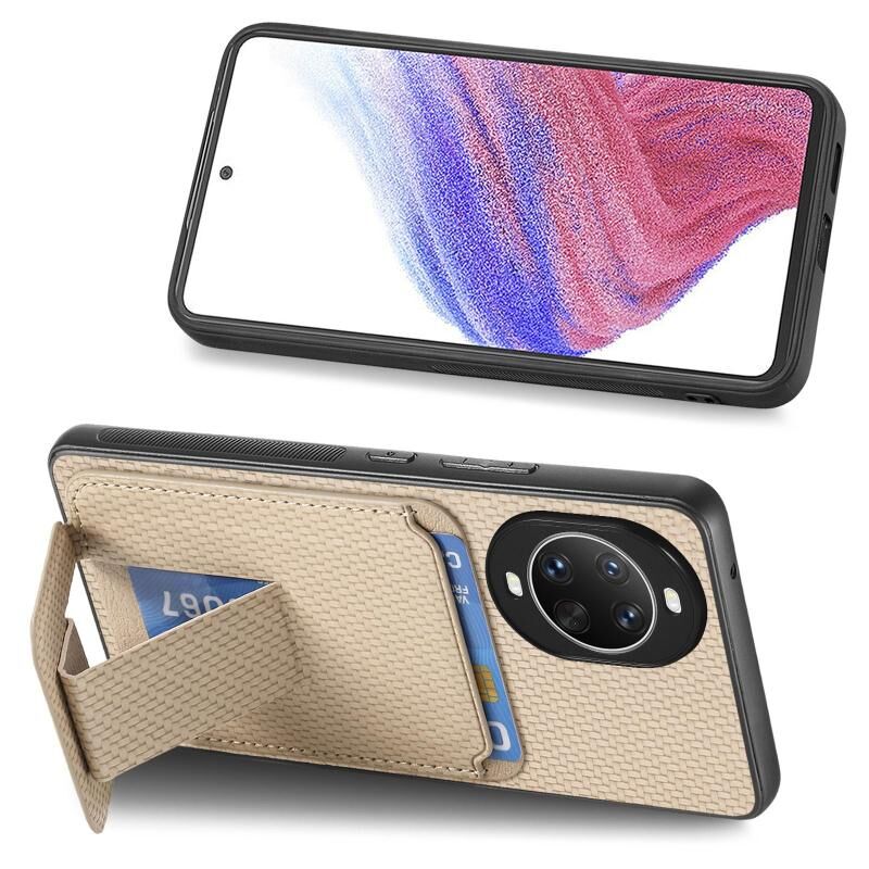Θήκη τηλεφώνου για Huawei nova 14 από ανθρακονήματα με κάρτες και βάση στήριξης (Χακί)
