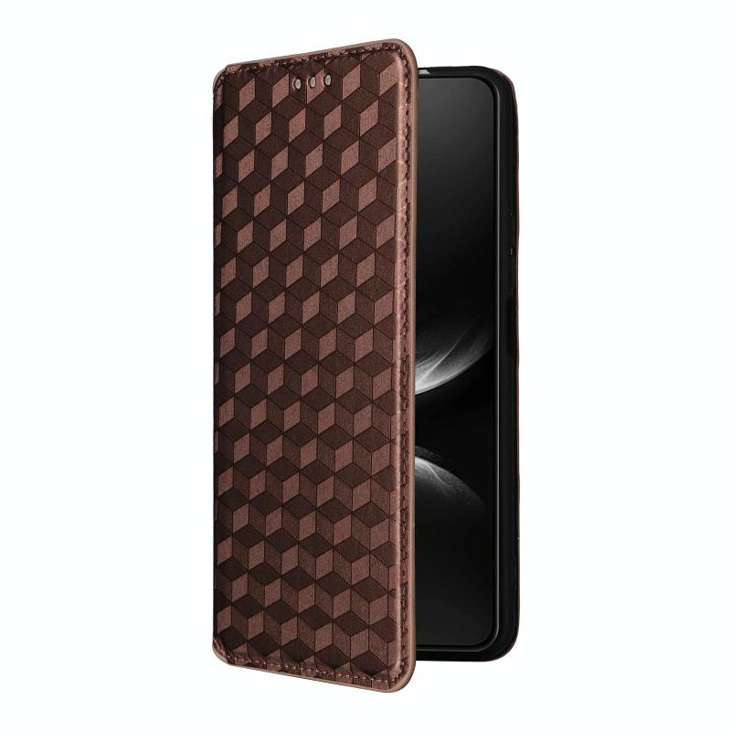 Θήκη Huawei nova 14 Pro 5G Δερμάτινη με Υφή Κυβικού Πλέγματος (Καφέ)