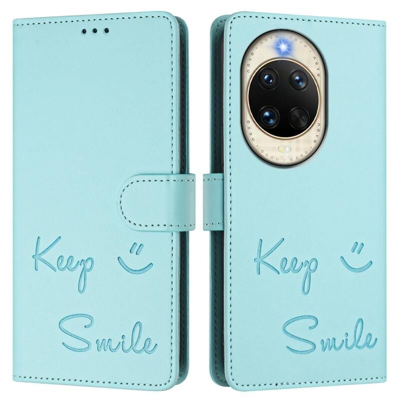 Θήκη τηλεφώνου Huawei nova 14 Pro 5G από δέρμα με ανάγλυφο χαμόγελο και RFID (Μέντας Πράσινο)