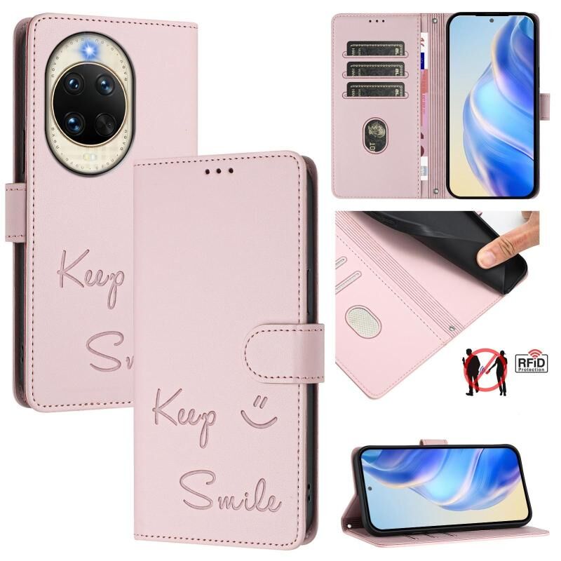 Θήκη τηλεφώνου Huawei nova 14 Pro 5G από δέρμα με ανάγλυφο χαμόγελο και RFID (Μέντας Πράσινο)