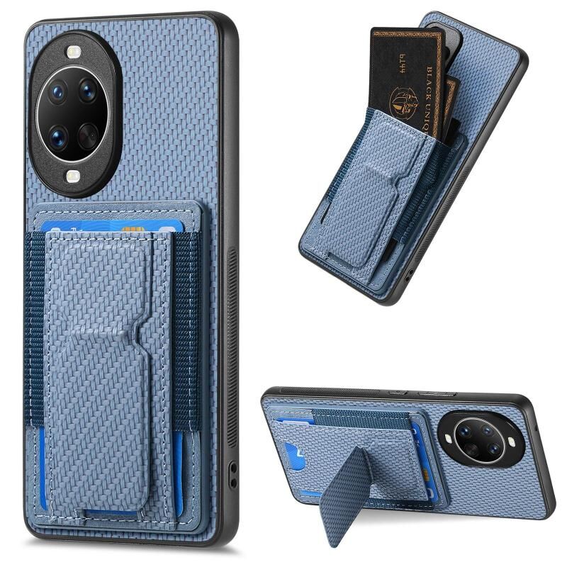 Θήκη τηλεφώνου για Huawei nova 14 Pro, από ανθρακονήματα, με πτυσσόμενη βάση, ελαστική θήκη καρτών (Μπλε)