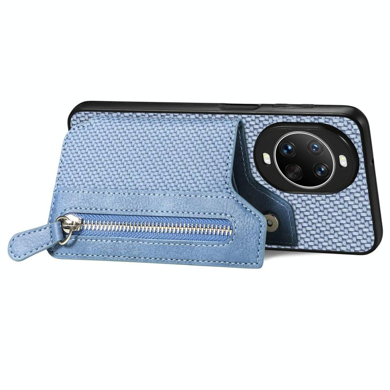 For Huawei nova 14 Pro Carbon Fiber Horizontal Flip Zipper Wallet Phone Case(Blue)