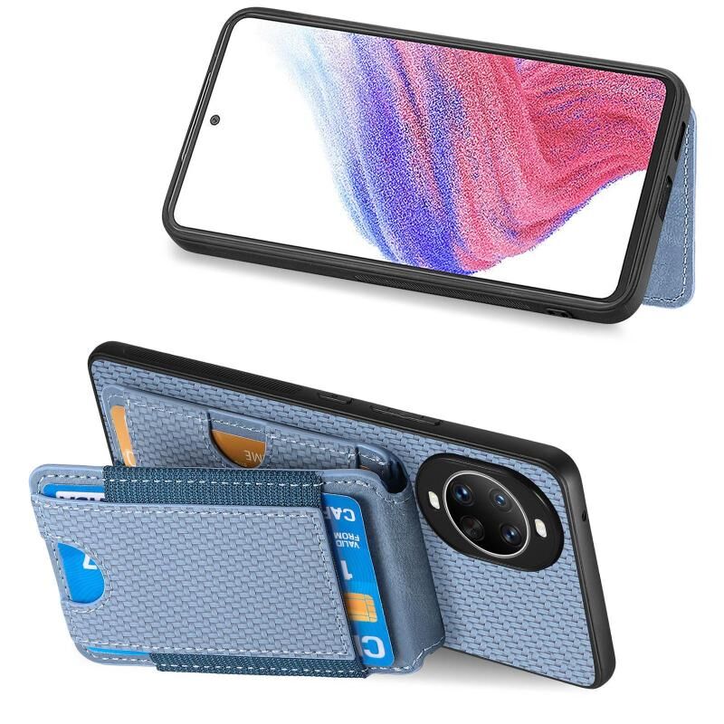 Θήκη τηλεφώνου Huawei nova 14 Pro Carbon Fiber, κάθετη, τύπου πορτοφολιού με βάση (Μπλε)