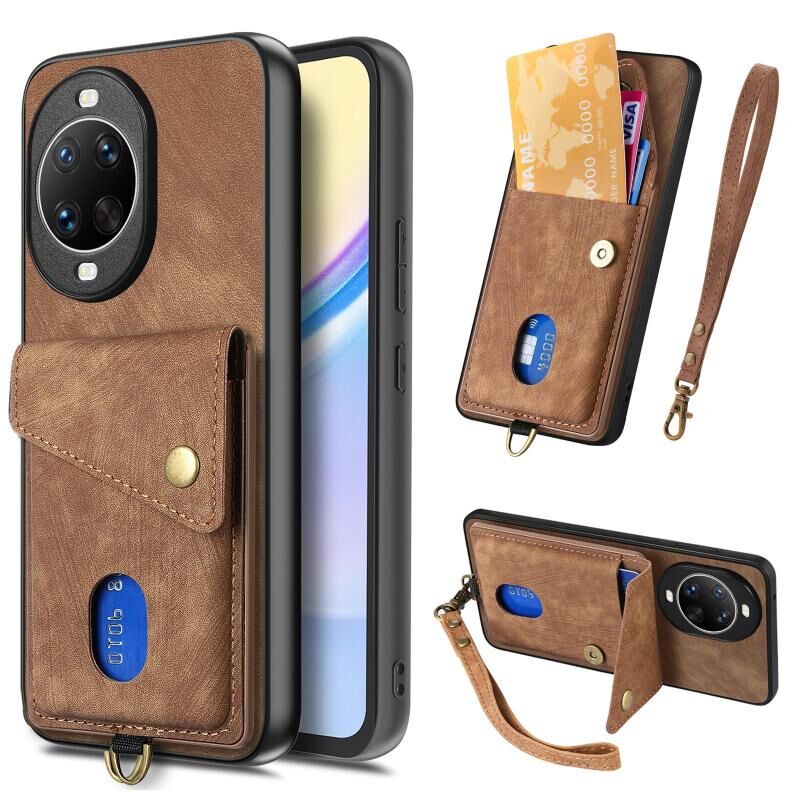 Θήκη τηλεφώνου Huawei nova 14 Pro Retro Card Wallet, δερμάτινη, αναδιπλούμενη με λουρί (Μαύρο)