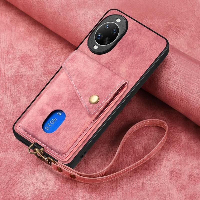 Θήκη τηλεφώνου Huawei nova 14 Retro Card Wallet, δερμάτινη, αναδιπλούμενη με λουρί (Μαύρο)