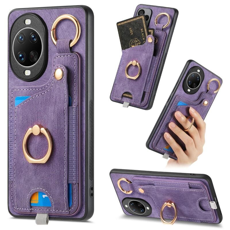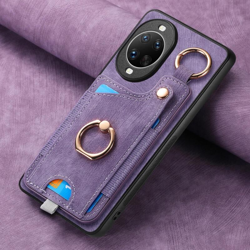 Θήκη τηλεφώνου Huawei nova 14 με ρετρό υφή, δακτύλιο κάρτας και θηλιά για κρέμασμα (Ροζ)