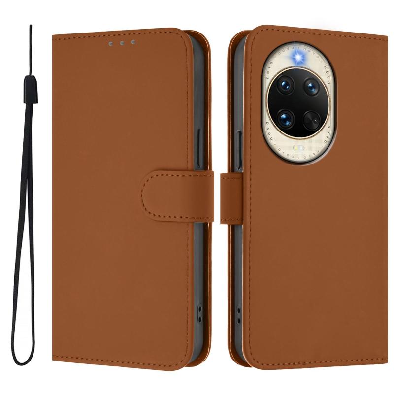 For Huawei nova 14 Skin Feel Solid Color Leather Phone Case with Lanyard(Brown)