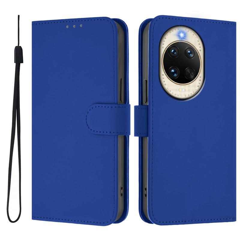 For Huawei nova 14 Skin Feel Solid Color Leather Phone Case with Lanyard(Dark Blue)