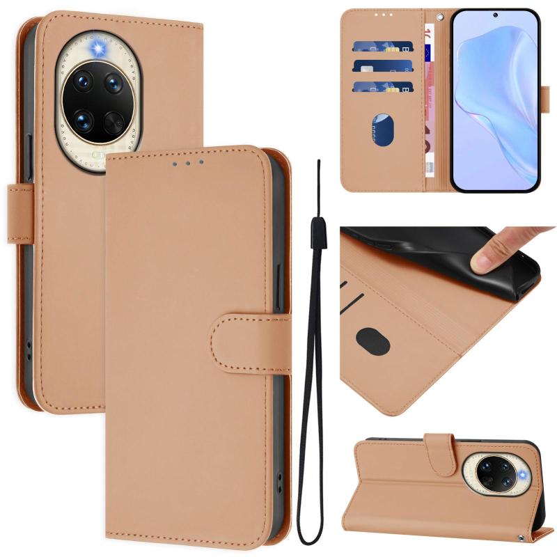For Huawei nova 14 Skin Feel Solid Color Leather Phone Case with Lanyard(Nude)